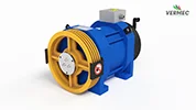Model | Load (in kg) | Roping | Speed (in m/sec) | Height (m) | Sheave (mm) | Rope (mm) | No. of Grove | Power (KW) | Amp | Rating | INS Class | IP Class |