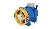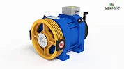 Model | Load (in kg) | Roping | Speed (in m/sec) | Height (m) | Sheave (mm) | Rope (mm) | No. of Grove | Power (KW) | Amp | Rating | INS Class | IP Class |